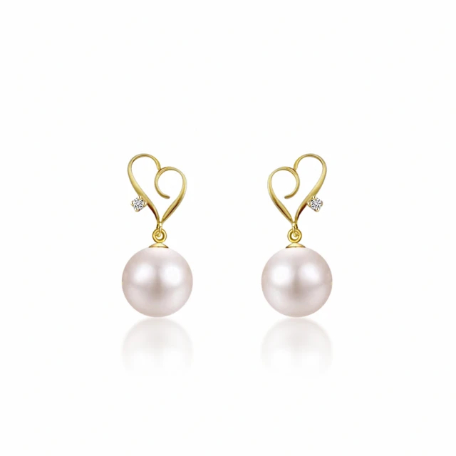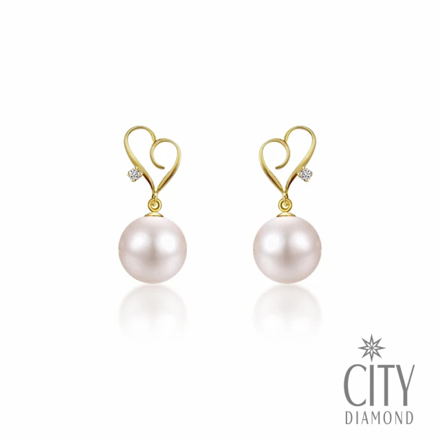 【City Diamond 引雅】『初心』18K日本AKOYA珍珠黃K金鑽石愛心造型耳環(東京Yuki系列)