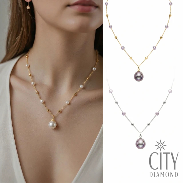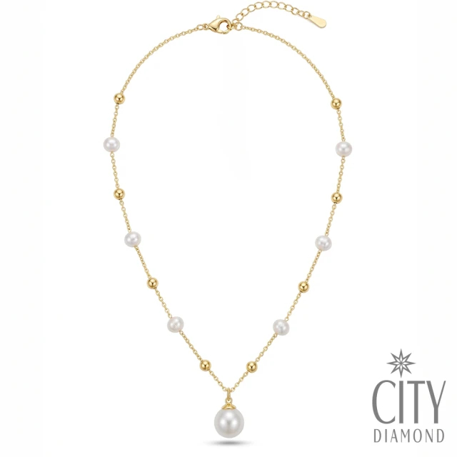 【City Diamond 引雅】天然珍珠10mm 金球 隔珠 造型 項鍊 -多款任選(珠潤月詠系列)