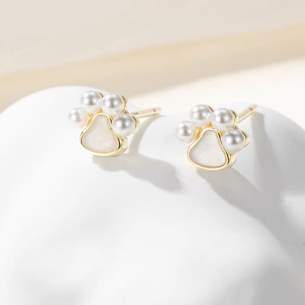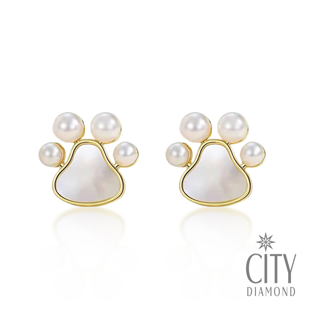 【City Diamond 引雅】天然珍珠 925純銀耳針 母貝 狗狗 造型 耳環
