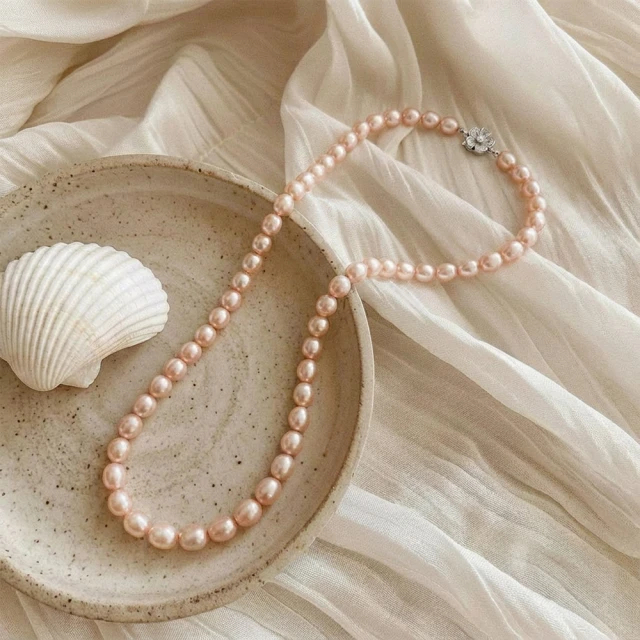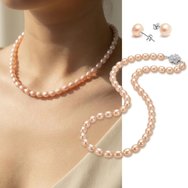買項鍊送耳環 溫潤時尚 強光粉橘色天然淡水珍珠