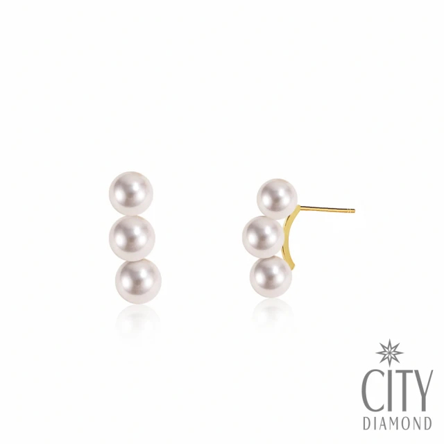 【City Diamond 引雅】『法式女伶』18K日本AKOYA珍珠5.5mm黃K金耳環(東京Yuki系列)