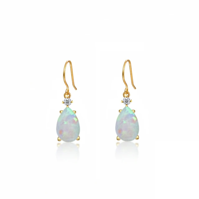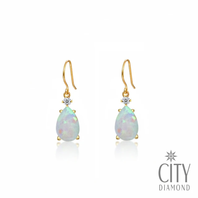【City Diamond 引雅】『清晨之露』18K日本天然蛋白石鑽石水滴造型黃K金耳環(東京Yuki系列)