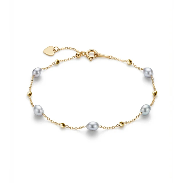 【City Diamond 引雅】『灰色與青』18K日本AKOYA珍珠4mm真多麻色黃K金手鍊(東京Yuki系列)
