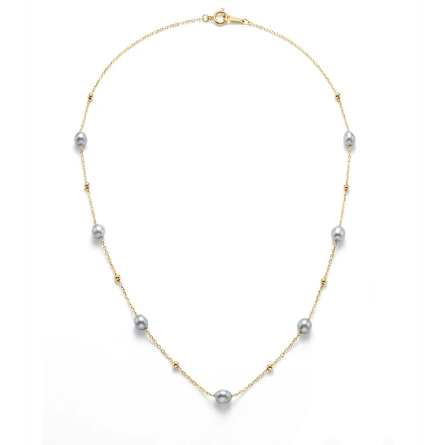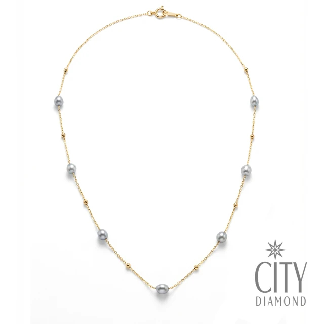【City Diamond 引雅】『灰色與青』18K日本AKOYA珍珠4mm真多麻色黃K金項鍊(東京Yuki系列)