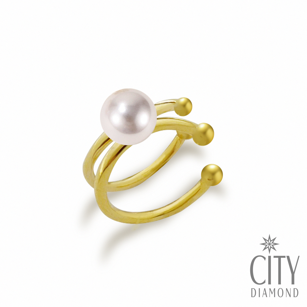 【City Diamond 引雅】純銀日本AKOYA珍珠5mm黃K色耳骨夾耳環(東京Yuki系列)
