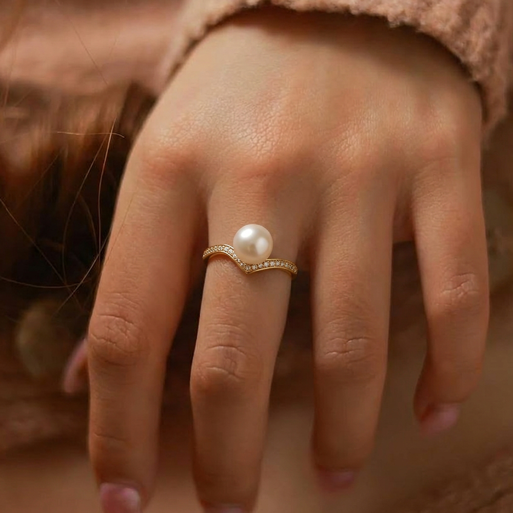 【City Diamond 引雅】網路獨家 日本純銀 AKOYA珍珠 6mm 水鑽 黃K色 可調式 戒指(東京Yuki系列)