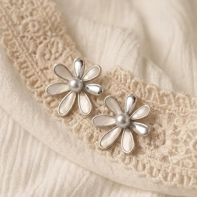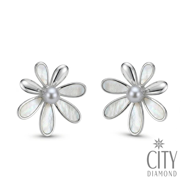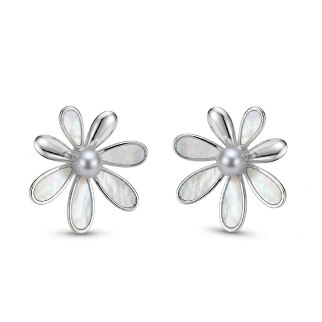 【City Diamond 引雅】網路獨家 日本AKOYA珍珠 5mm 真多麻色 純銀 母貝 花形耳環 (東京Yuki系列)