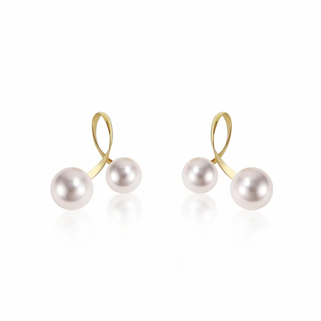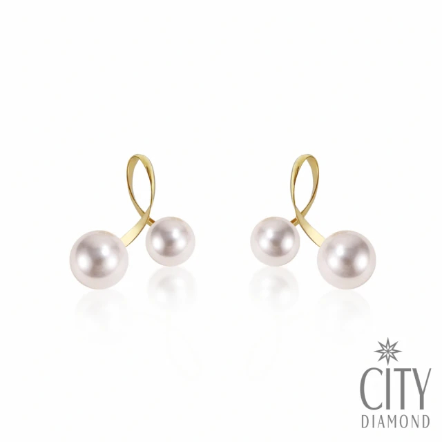 【City Diamond 引雅】『躍動青春』18K日本AKOYA珍珠6mm不對稱曲線黃K金耳環(東京Yuki系列)