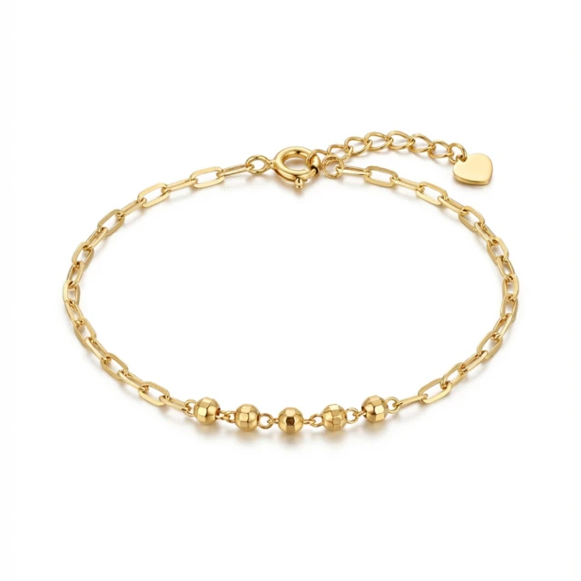 【City Diamond 引雅】14K 刻面閃耀 五珠球 黃K金 手鍊(浮光流影系列)