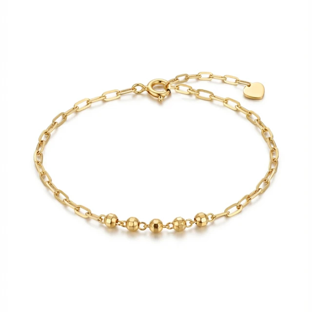 【City Diamond 引雅】14K 刻面閃耀 五珠球 黃K金 腳鍊(浮光流影系列)