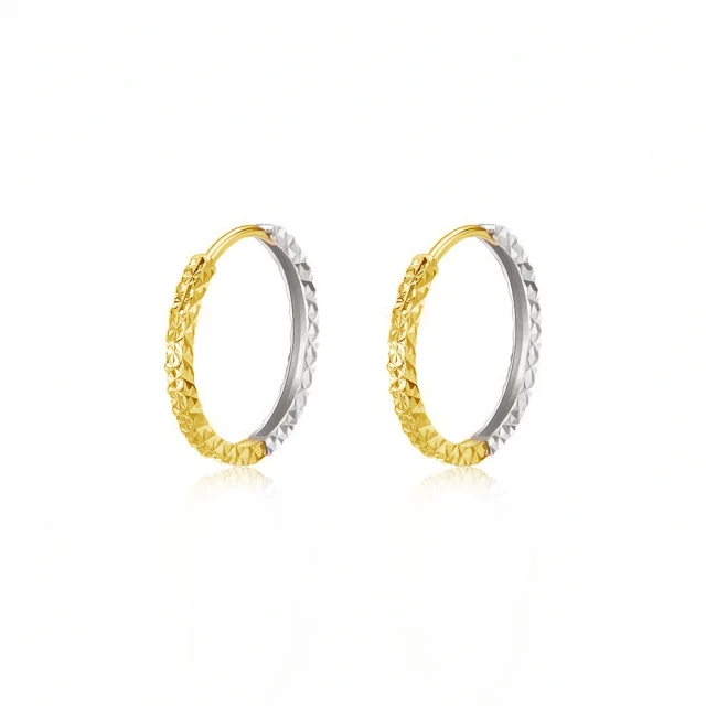 【City Diamond 引雅】18K刻花白K金黃K金雙色斗圈耳環(浮光留影系列)