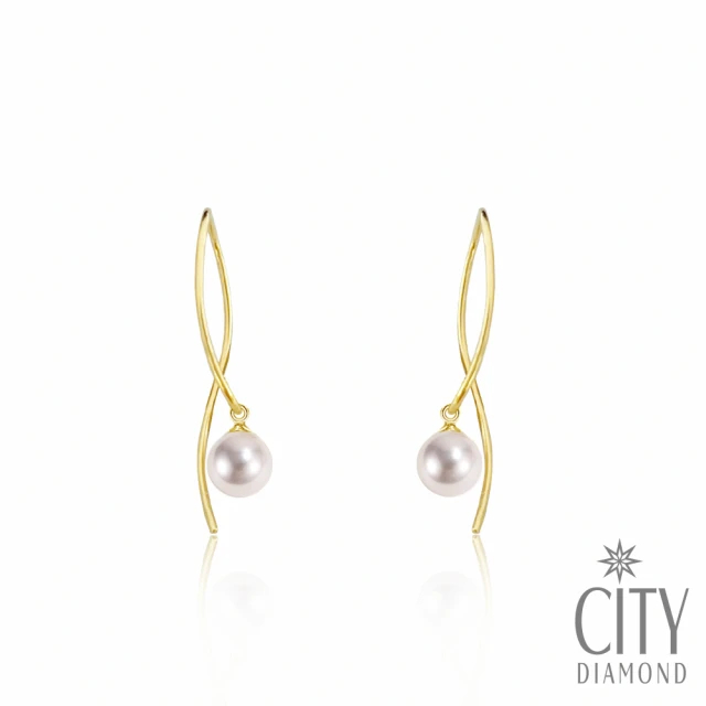 【City Diamond 引雅】18K日本AKOYA珍珠5.5mm長掛耳環(東京Yuki系列)