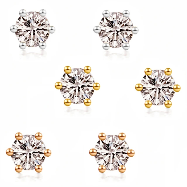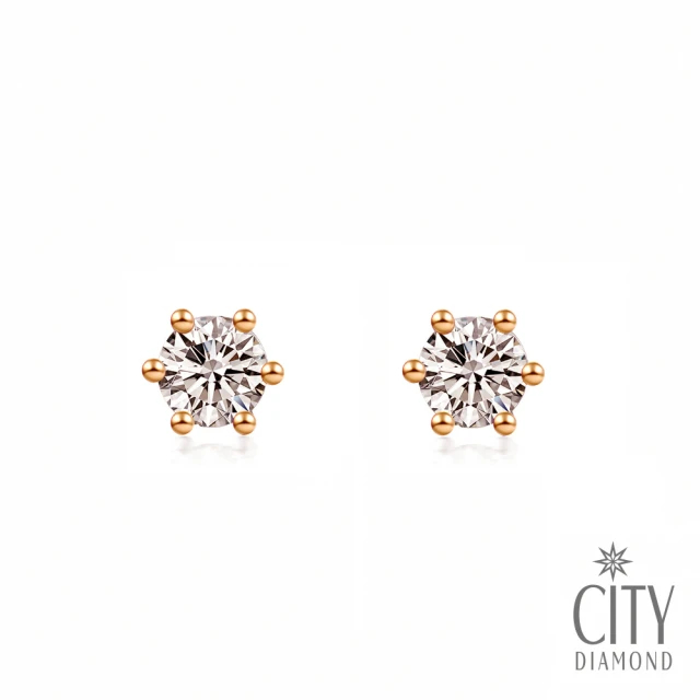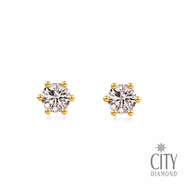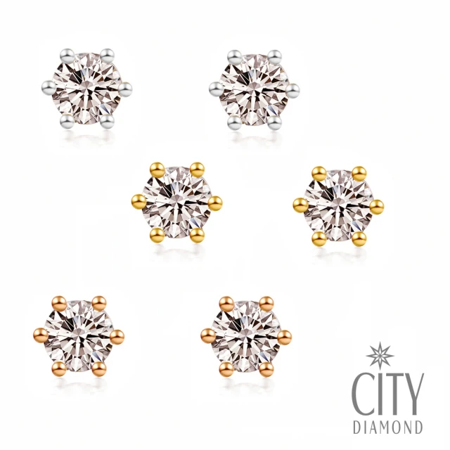 【City Diamond 引雅】18K鉑金日本天然香檳鑽石10分經典六爪耳環-三色任選(東京Yuki系列)