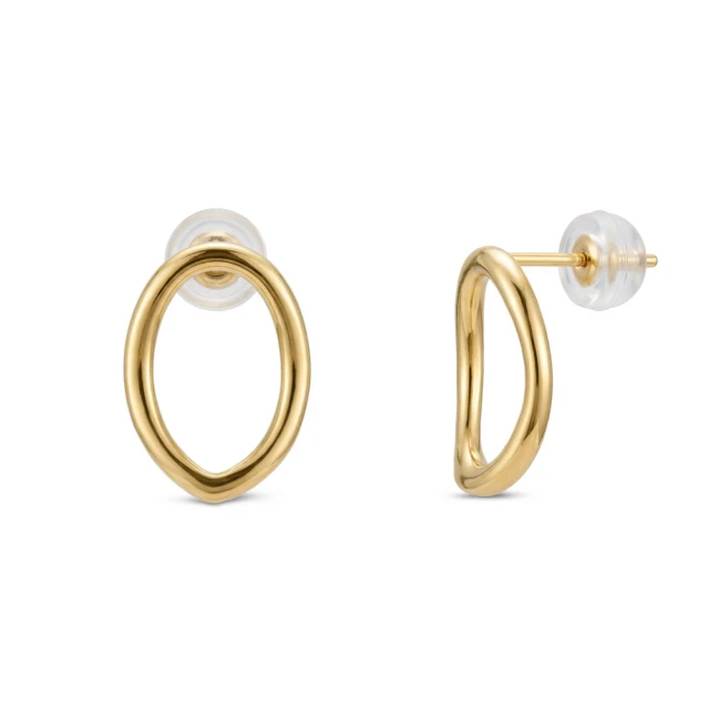 【City Diamond 引雅】18K 日本 弧形 黃K金 斗圈設計 耳環(東京Yuki系列)