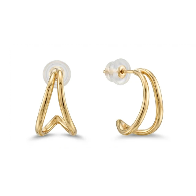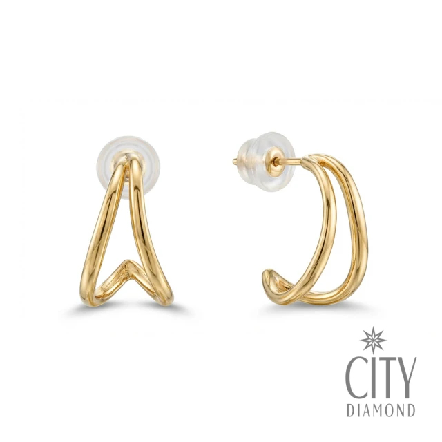 【City Diamond 引雅】18K 日本 流線 黃K金 斗圈設計 耳環(東京Yuki系列)