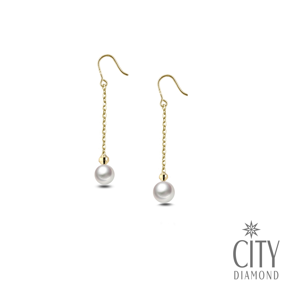【City Diamond 引雅】18K日本AKOYA珍珠5-6mm黃K長垂耳環(東京Yuki系列)