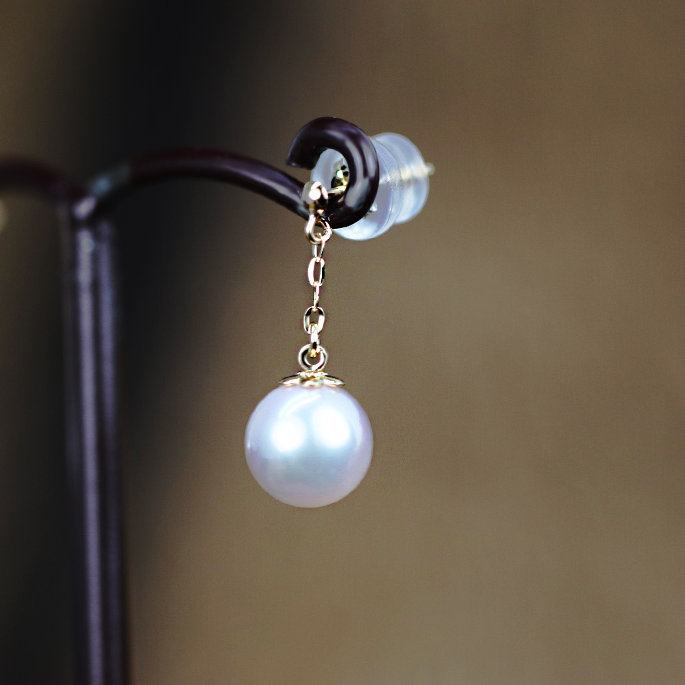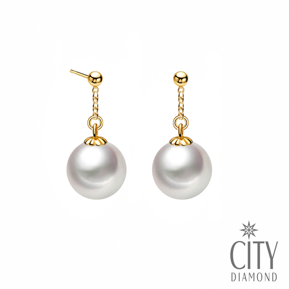 【City Diamond 引雅】18K日本AKOYA珍珠7.5MM黃K金垂掛耳環(東京Yuki系列)