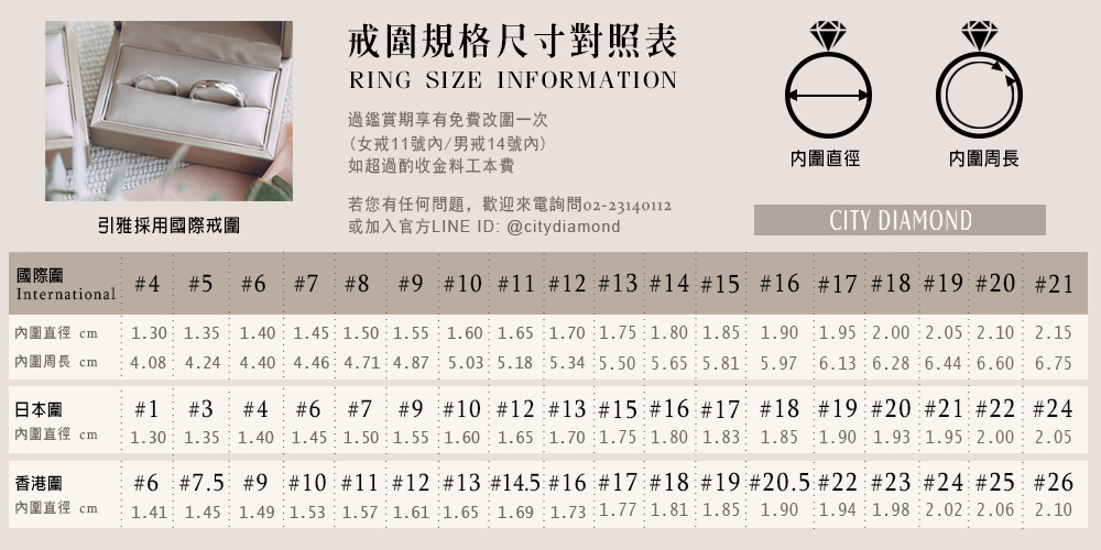 ◆男戒圍14以內,女戒圍11以內,大戒圍需酌收重量之費用,如需訂製特殊尺寸請來電諮詢